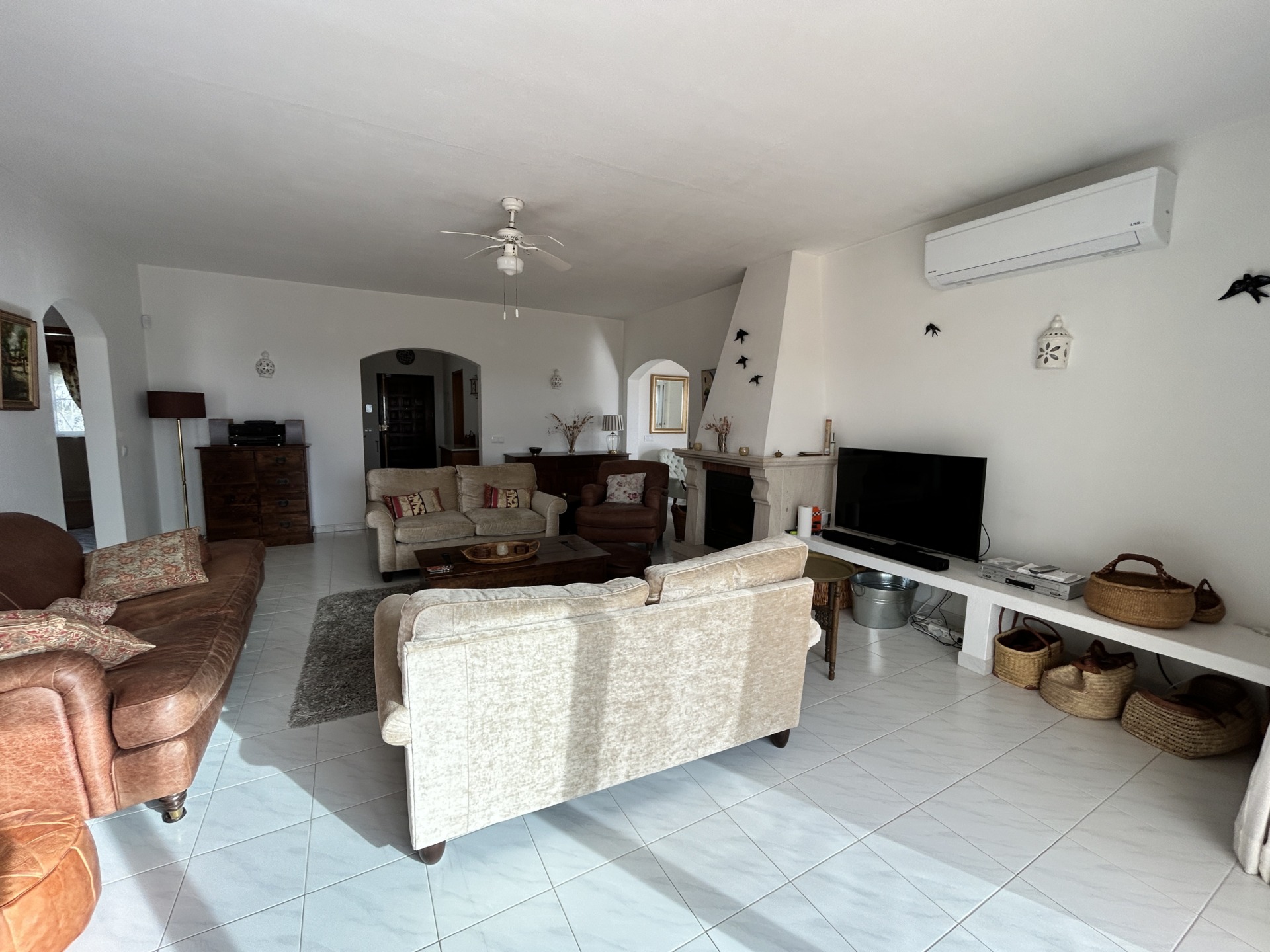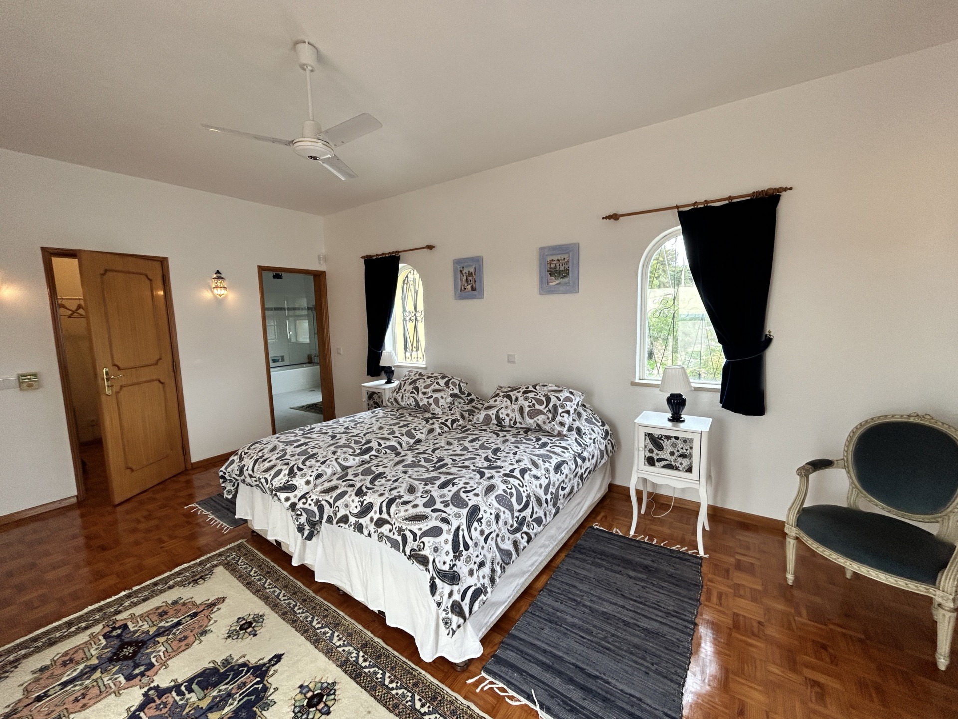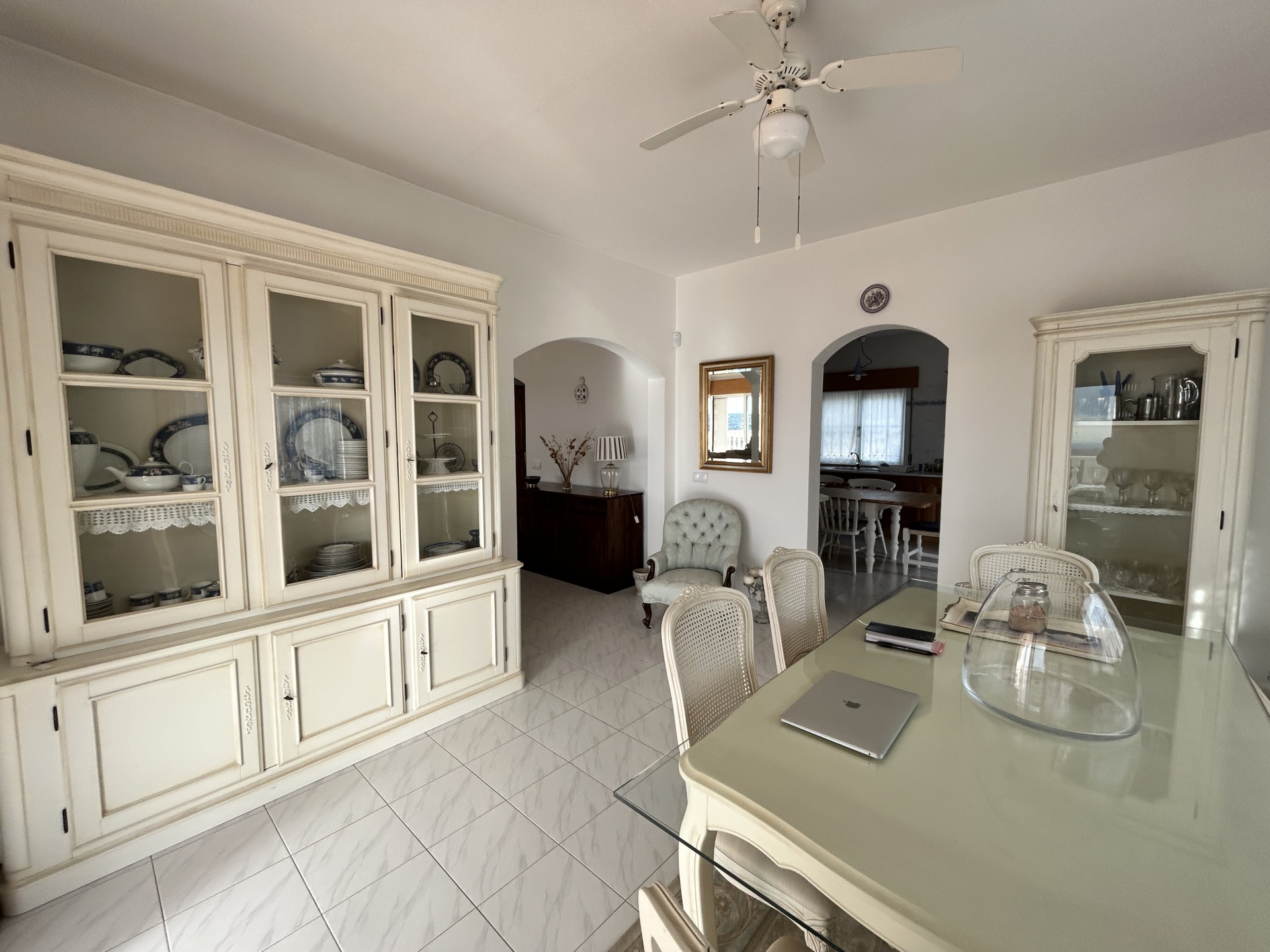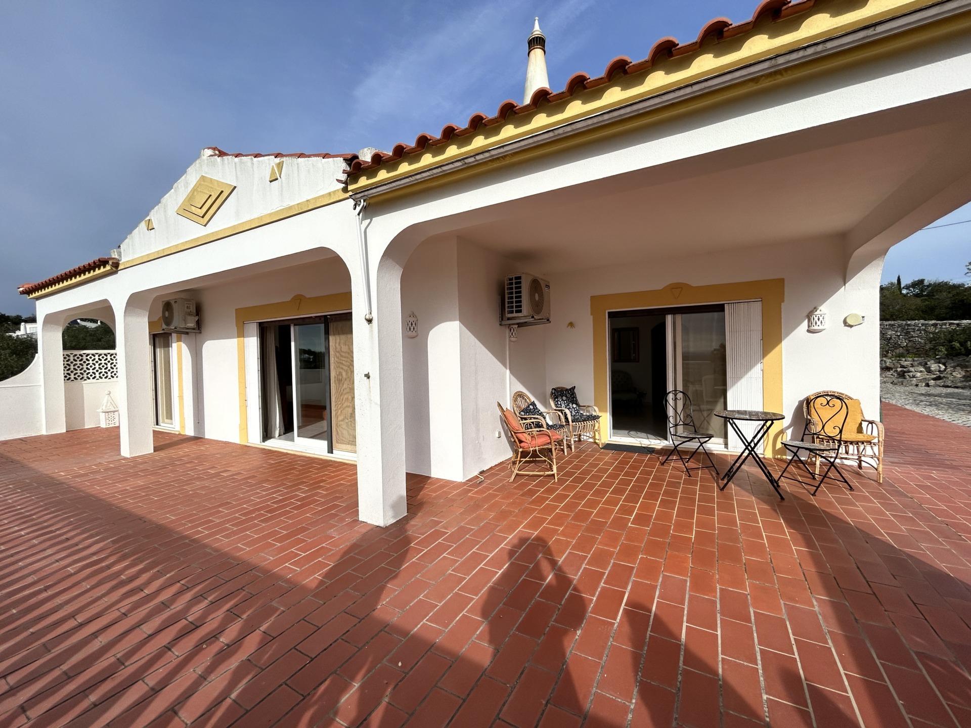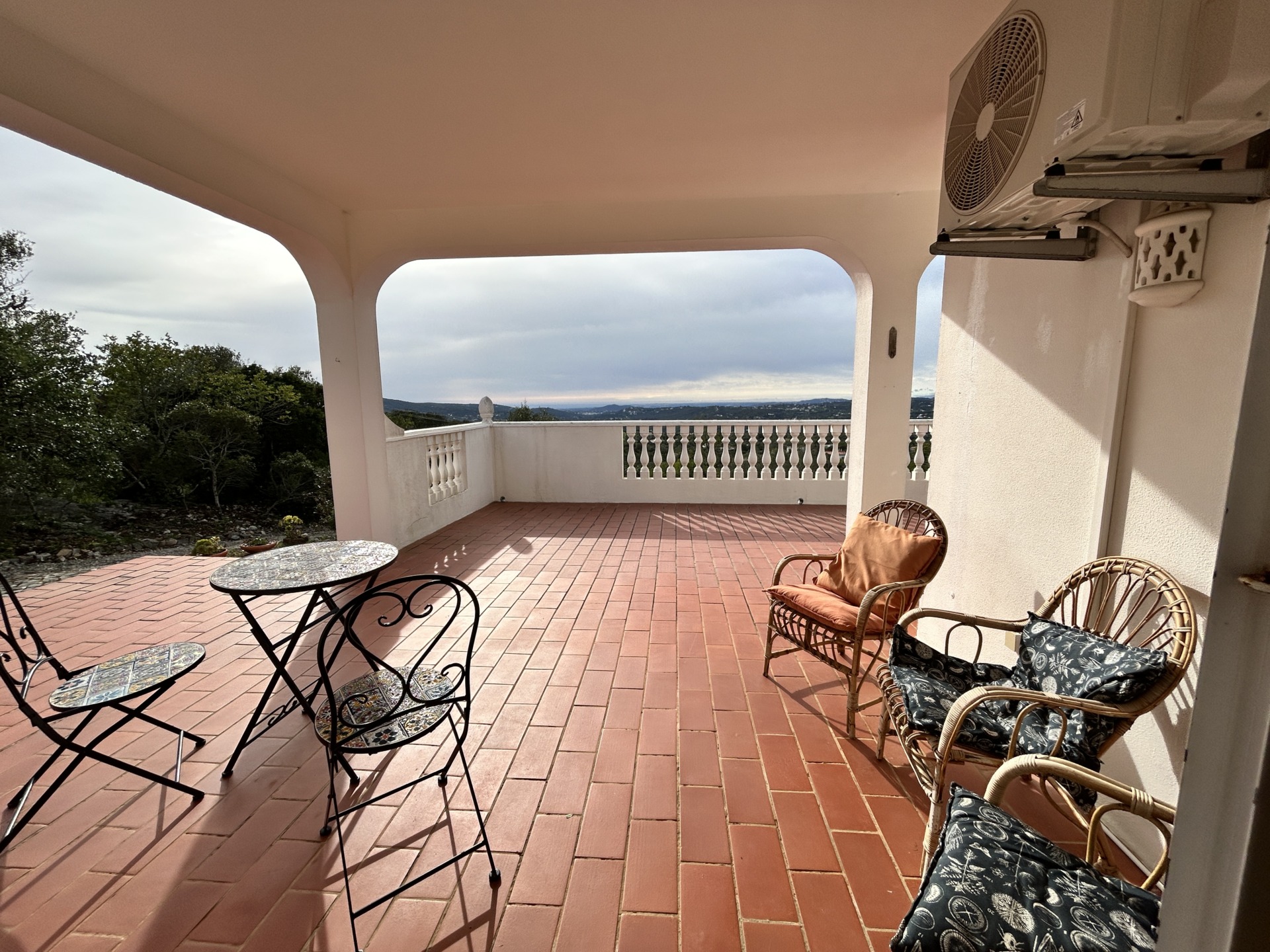 Située sur un généreux terrain de 3 160m2 planté d’oliviers et caroubiers matures, cette villa propose 241m2, un garage de 38m2 au sous-sol et une allée pavée avec la traditionnelle calçada pouvant accueillir plusieurs véhicules